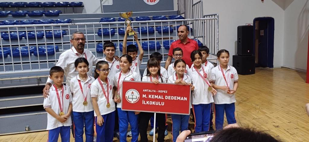 Geleneksel Çocuk Oyunları “Mendil Kapmaca” branşında Kepez Şampiyonu olan okulumuz 3-I sınıf takımı dün Turgut Özal Kapalı Spor Salonunda , Kepez İlçe Milli Eğitim Müdürü Sayın Kenan YAVUZ, Gençlik ve Spor İlçe Müdürü Yüksel DORUL, Okul Müdürümüz Hakan BAL , kurum müdür ve amirleri ve velilerin de katıldığı bir törenle şampiyonluk kupası ve madalyalarını aldılar.
